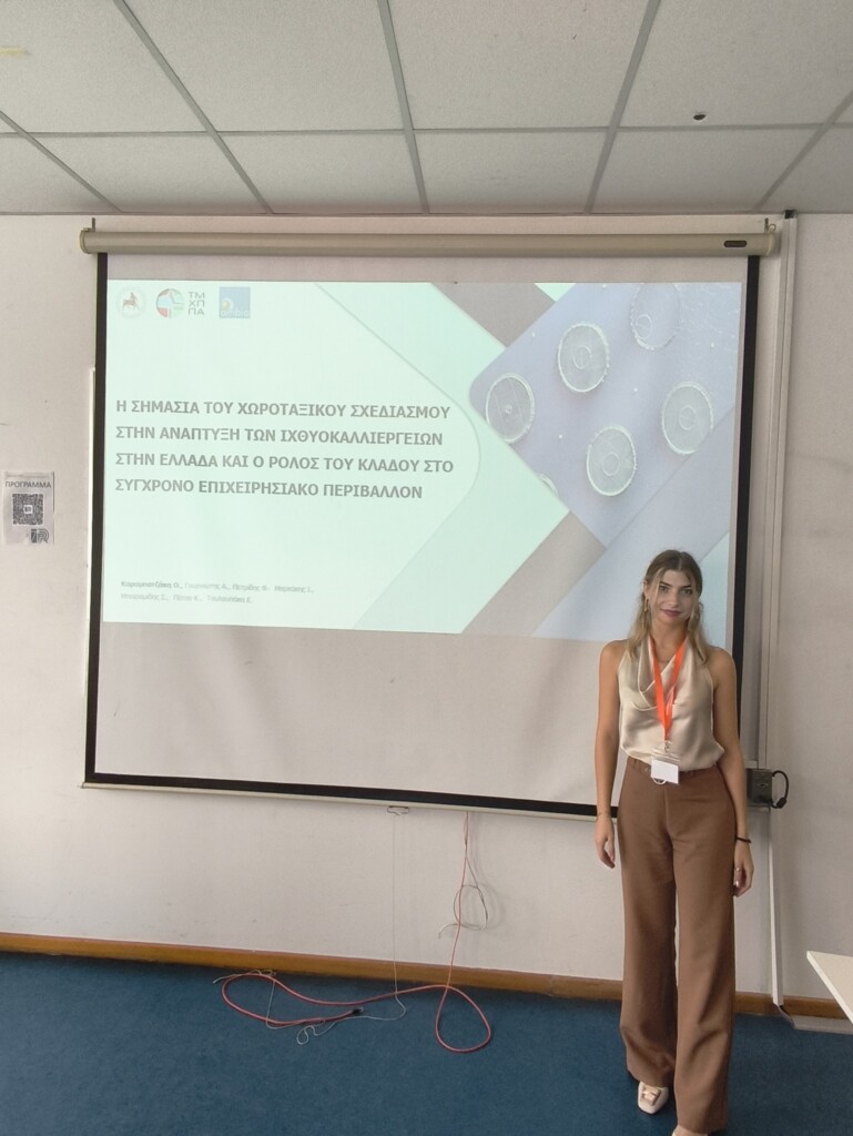 Representing AMBIO, Spatial Planner Ms. Theofania Karampatzaki delivered a presentation titled “The Importance of Spatial Planning in the Development of Aquaculture in Greece and the Sector’s Role in the Modern Business Environment.” Her presentation highlighted the crucial role of spatial planning in promoting the sustainable growth and competitiveness of the aquaculture sector. Notably, it was the first time that the social and economic footprint of Greek aquaculture was presented at both regional and national levels. The presentation received excellent feedback and sparked a series of questions and discussions among participants.